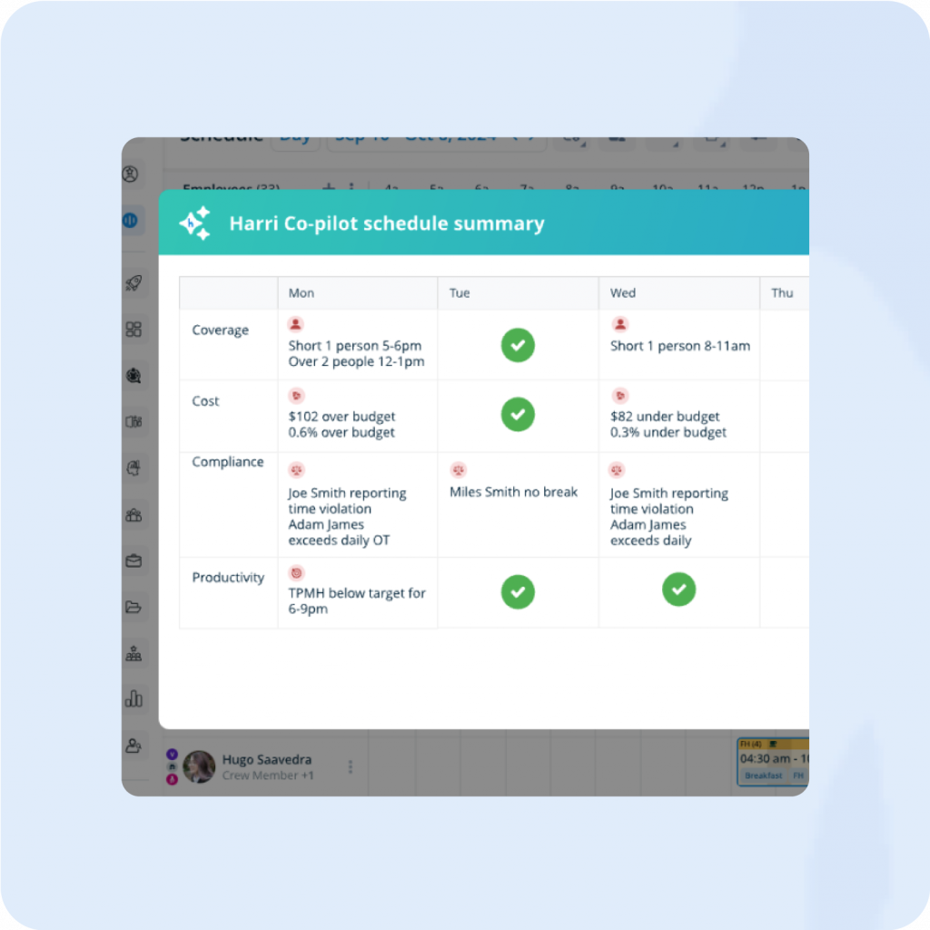 We embed and automate compliance safeguards within workflows for effortless adherence. With Harri, hospitality operators can proactively detect risks, automate critical workflows and avoid costly fines.